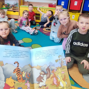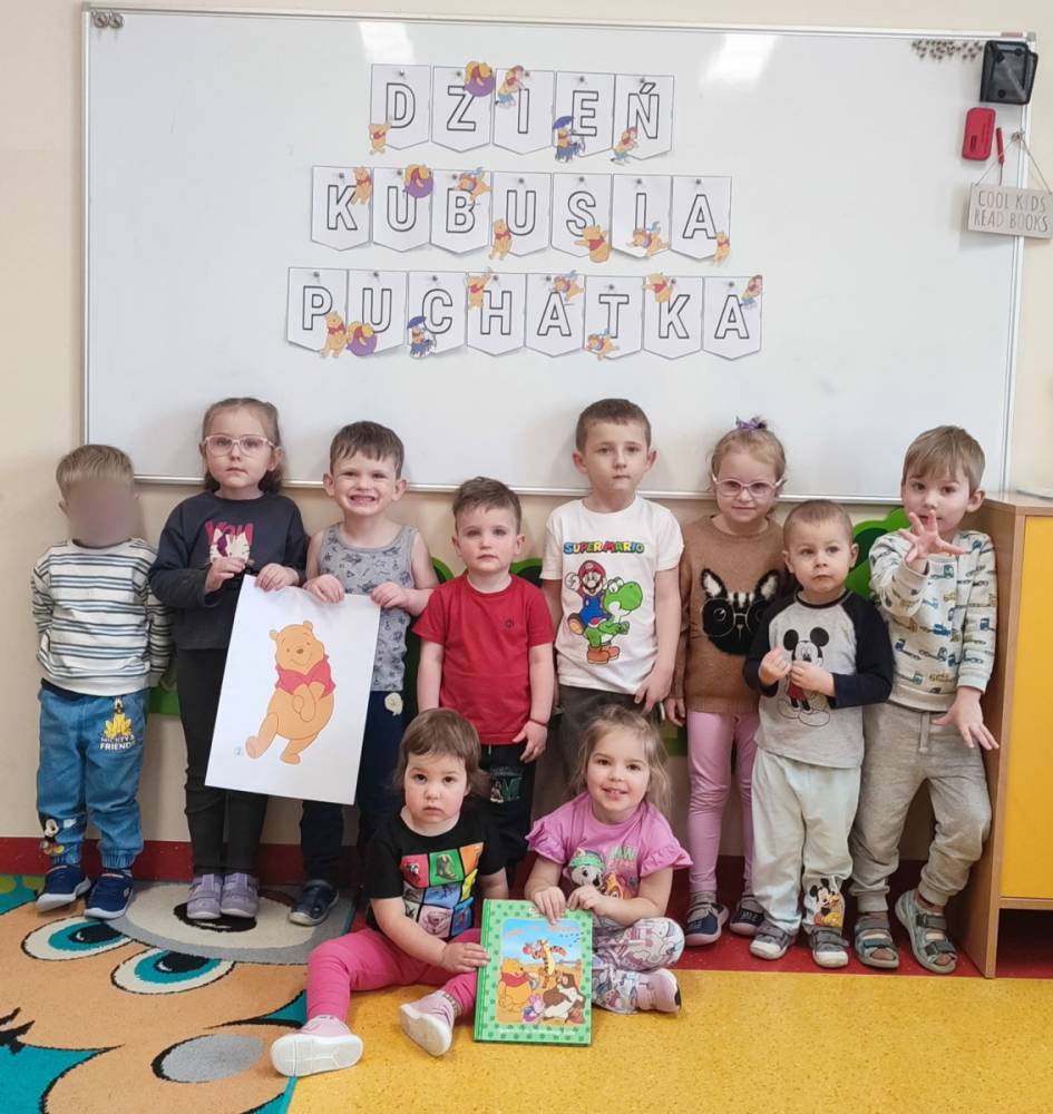 Dzien Kubusia Puchatka w Punkcie Przedszkolnym "Kubus" W naszym przedszkolu zrobiło się bajkowo! Dzieci świętowały Dzien Kubusia Puchatka – było czytanie przygod ze Stumilowego Lasu, zabawy tematyczne, zagadki oraz mnóstwo uśmiechu czne, zagadki oraz mnóstwo usmiechu.