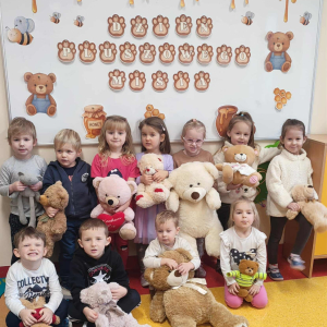 Dzień Pluszowego Misia w Punkcie Przedszkolnym „Kubuś” .Nasze przedszkolaki przeniosły się do magicznego świata pluszowych misiów. Wszystkie dzieci przyniosły swoje ukochane maskotki, które towarzyszyły nam w wykonywaniu zadań, zabawach, tańcach oraz wspólnym słuchaniu opowiadania. Na zakończenie dnia, razem z zerówką, zorganizowaliśmy misiowe kino.