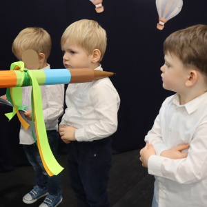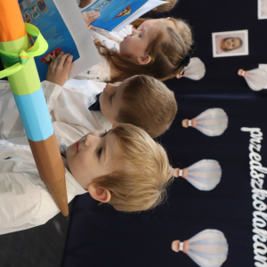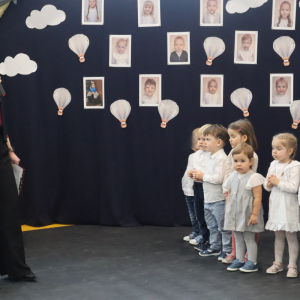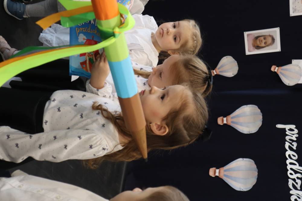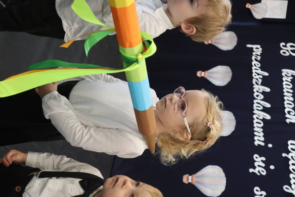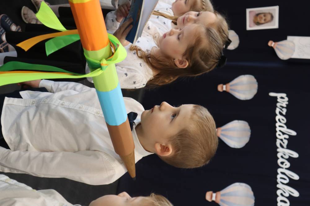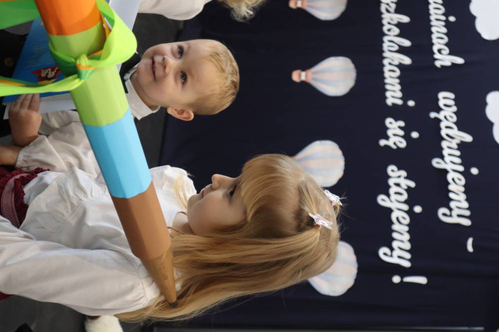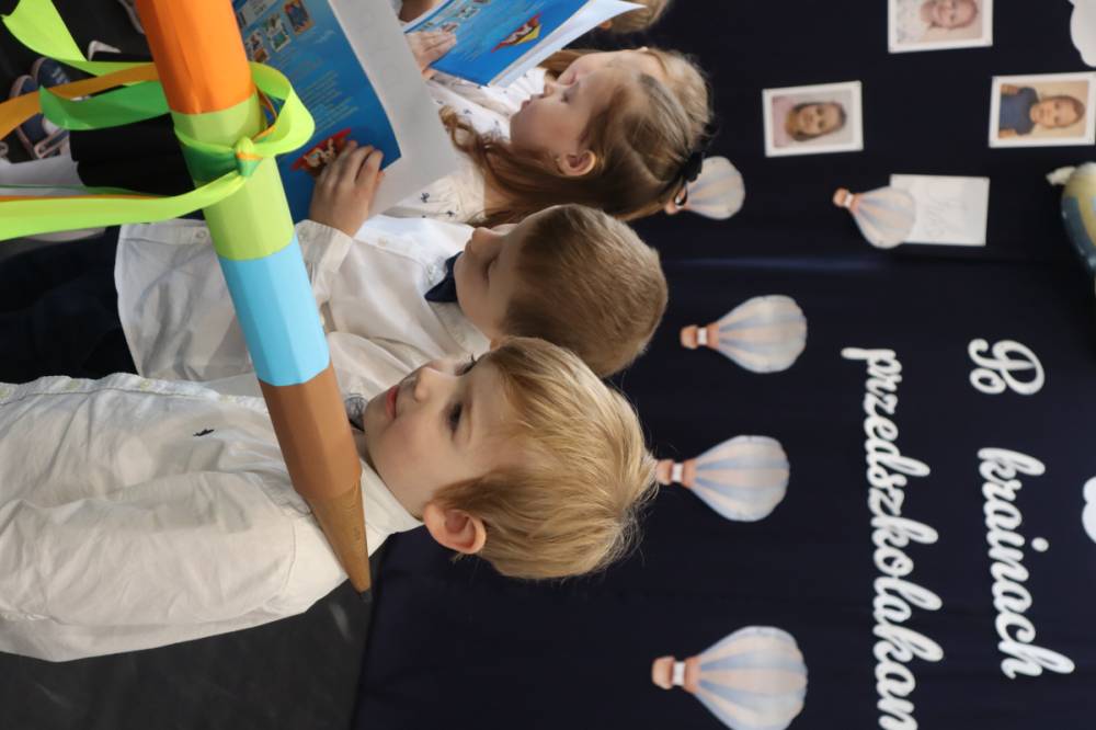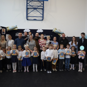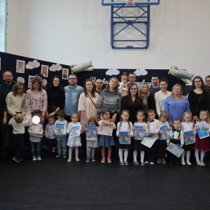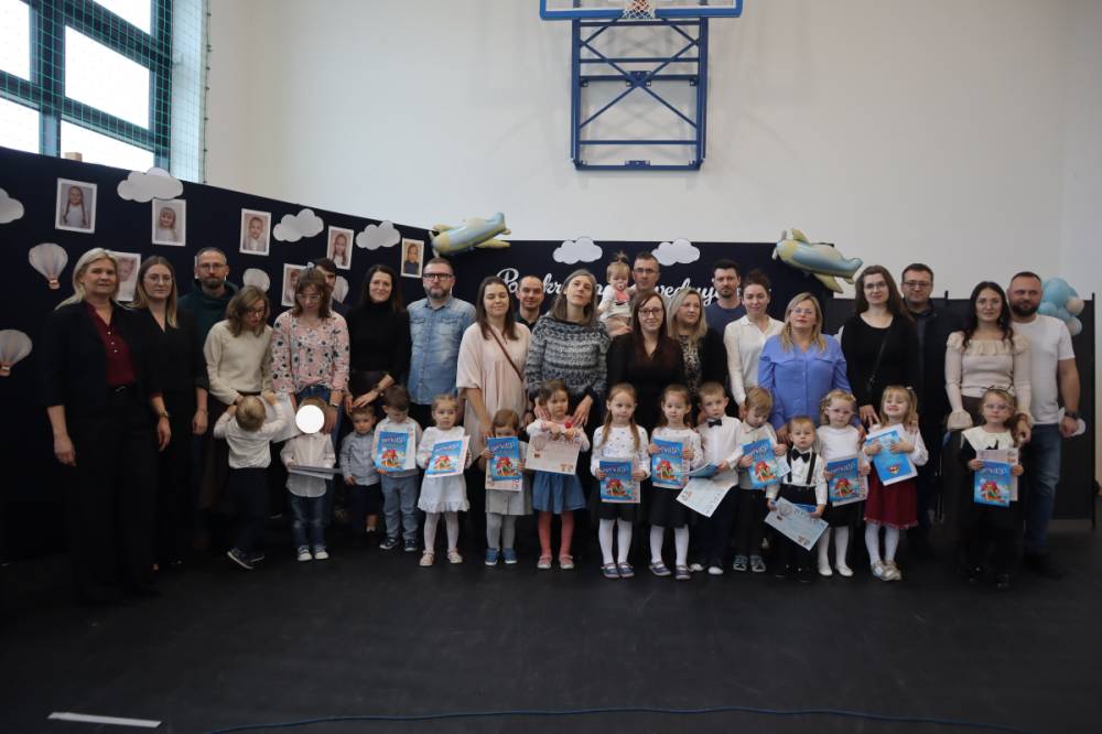 Po krainach wędrujemy – przedszkolakami się stajemy! Pod takim hasłem odbyło się dzis w naszej szkole wyjątkowe wydarzenie – Pasowanie na Przedszkolaka. Z dumą patrzylismy, jak nasi najmłodsi odkrywcy z Punktu Przedszkolnego „Kubuś” przemierzali krainy tanca, spiewu i mądrosci, by na koncu podróży oficjalnie wstąpic do grona przedszkolaków. Razem z naszymi maluchami występowały również dzieci z Oddziału Przedszkolnego, które dały piękny przykład młodszym i dodały im pewności siebie na scenie. Przedstawienie zostało przygotowane z ogromnym zaangażowaniem przez Panią Alicję Malicką, Panią Karolinę Swit oraz Panią Łucję Srokę, które zadbały, aby każdy moment był pełen magii, radosci i przedszkolnego ciepła. W tworzeniu dekoracji ogromnym wsparciem były panie: Joanna Smulczyk oraz Beata Boron. Gratulujemy wszystkim nowo pasowanym przedszkolakom! Niech każdy dzien będzie dla Was nową przygodą pełną usmiechu, nauki i zabawy.
