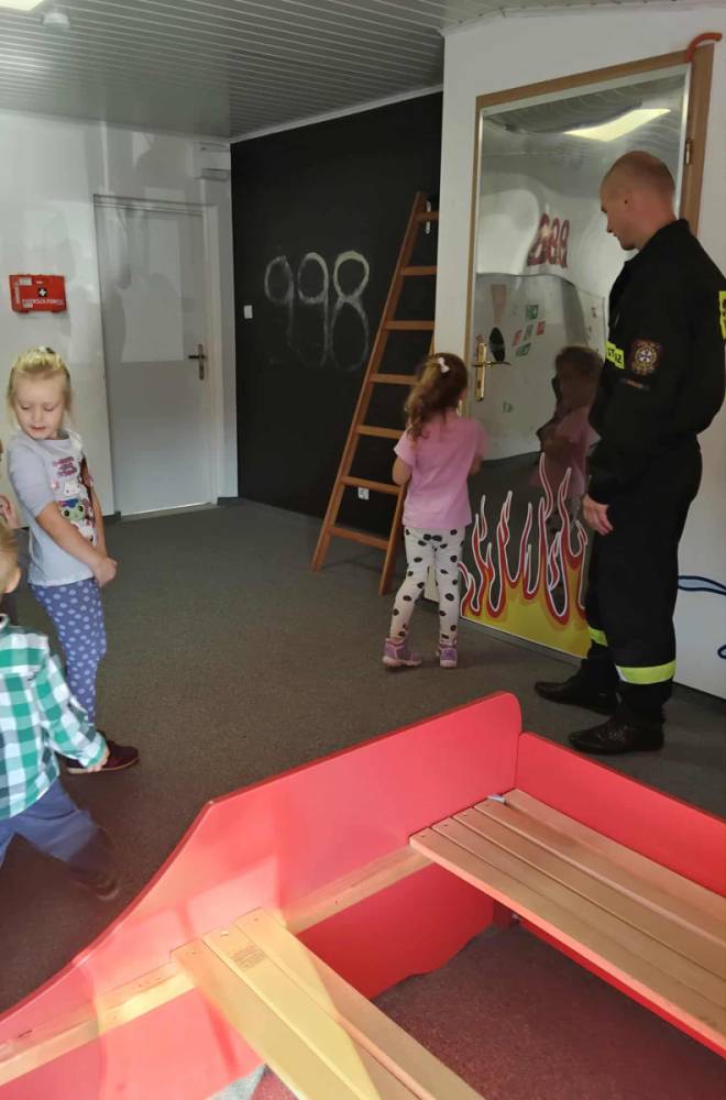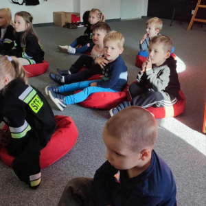 Dzieci zi Punktu Przedszkolnego "Kubuś" odwiedziły wczoraj (8 października) Komendę Państwowej Straży Pożarnej, gdzie mieści się sala edukacyjna "Ognik". Wszystko zaczęło się od warsztatów na temat zachowania w sytuacjach zagrożenia ( szczególnie pożarem). Przedszkolaki niemalże weszły w strażackie buty. Była okazja do przebrania się w strażacki strój, a także do wejścia do profesjonalnego wozu strażackiego.