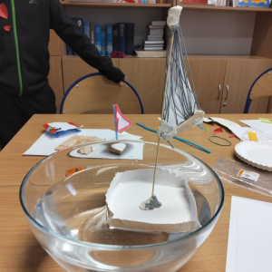 W minionym tygodniu grupa uczniów należąca do naszego szkolnego Klubu Młodych Odkrywców "Matematyczni odkrywcy" w ramach STEAM-owego projektu "Od prawa Archimedes do łodzi podwodnej" poszukiwała odpowiedzi na pytanie: Dlaczego statki pływają?