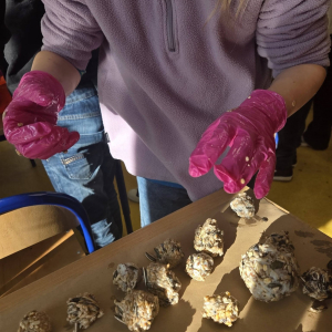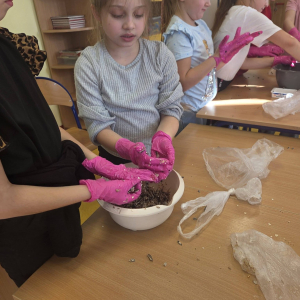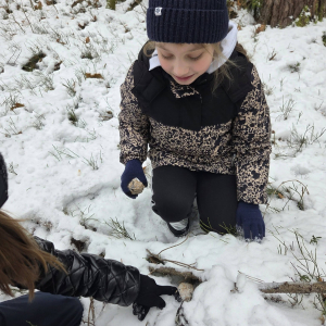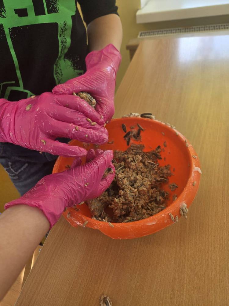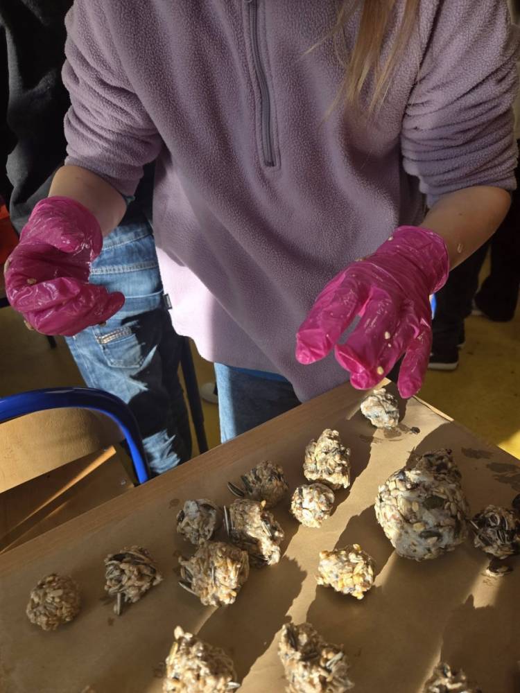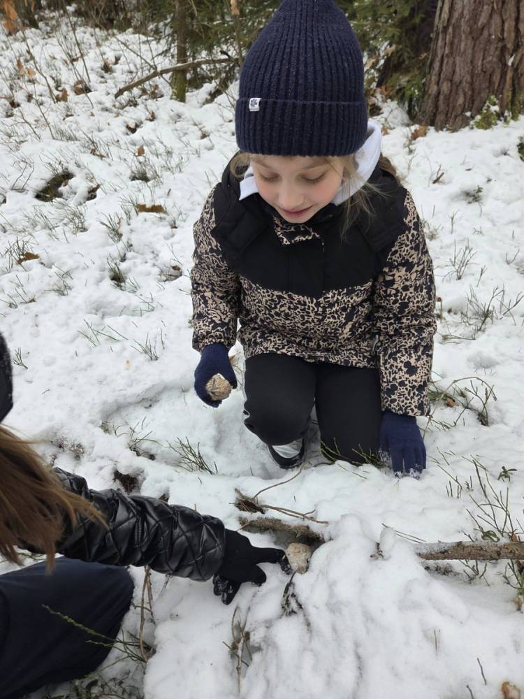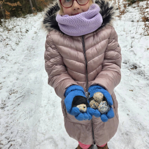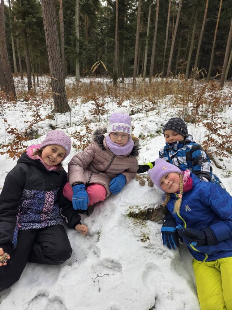 Zima to trudny czas dla ptaków, dlatego nasi najmłodsi uczniowie wyruszyli z wcześniej przygotowanym pokarmem. Z uśmiechami na twarzach i wielkimi sercami roznosili jedzenie do karmników oraz do lasu, pomagając skrzydlatym przyjaciołom przetrwać mroźne dni. To były małe gesty, ale o ogromnym znaczeniu. Tak właśnie rodzi się empatia odpowiedzialność i miłość do przyrody.