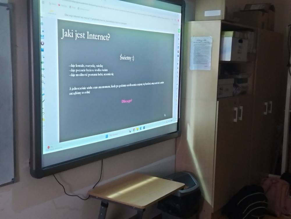 Tradycyjnie, nasza szkoła włączyła się w obchody tego jakże istotnego i ważnego wydarzenia. W tym roku zajęliśmy się tematem wpływu internetu na młodych użytkowników. Poprzez udział w lekcji online pn. "Dlaczego internet nas męczy? O przebodźcowaniu, koncentracji i byciu w relacjach" dowiedzieliśmy się, jak długie przebywanie w internecie, media społecznościowe i ciągły napływ bodźców wpływają na naszą koncentrację, emocje i relacje z innymi, czym jest przebodźcowanie i dlaczego czasem po byciu online trudniej się skupić, rozmawiać lub rozumieć siebie i innych. Podczas zajęć prowadząca wprowadziła w prosty i praktyczny sposób elementy uważności (mindfulness), jako narzędzia pomagającego odzyskać sprawczość w zakresie rozumienia siebie, pomagającego lepiej zauważać sygnały z ciała, emocje i granice w świecie cyfrowym, jak również umożliwiającego rozpoznawanie wczesnych sygnałów przebodźcowania.