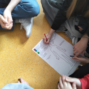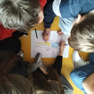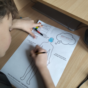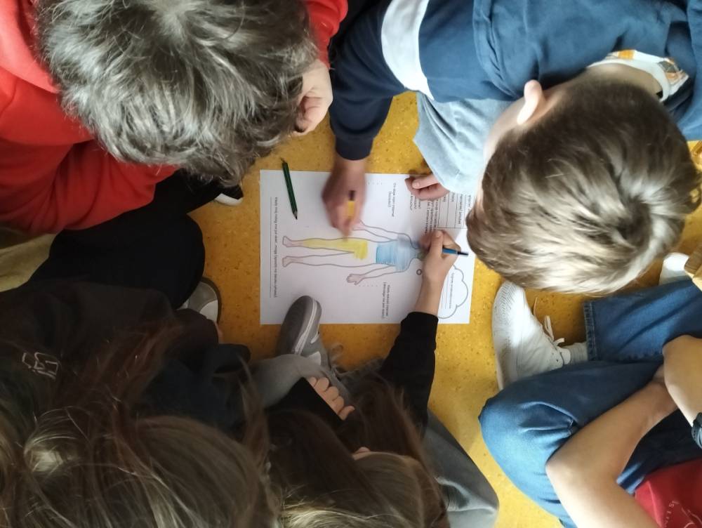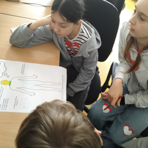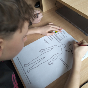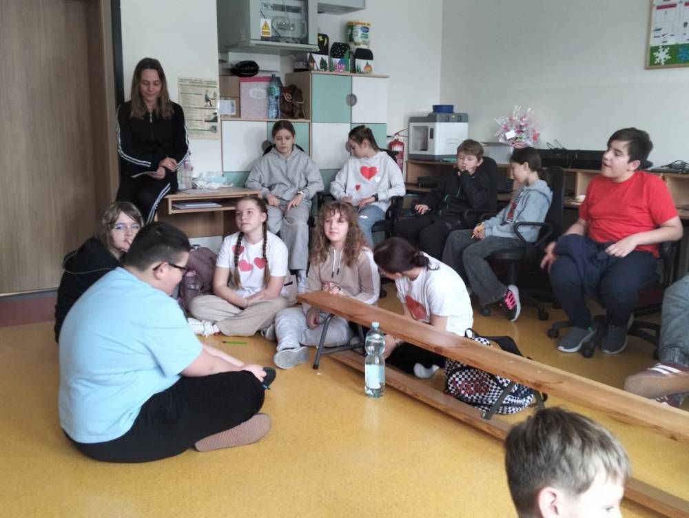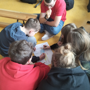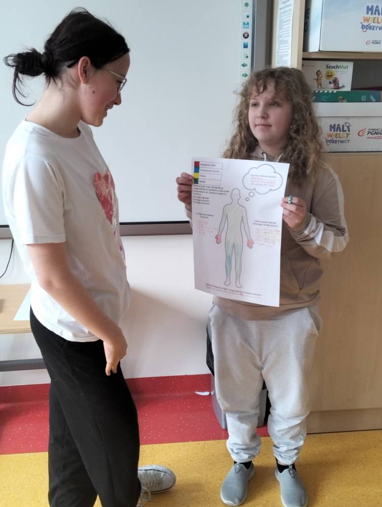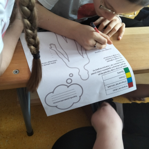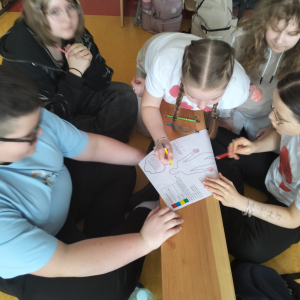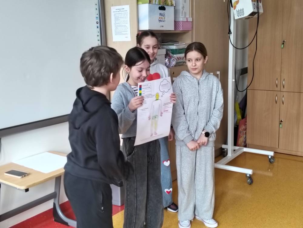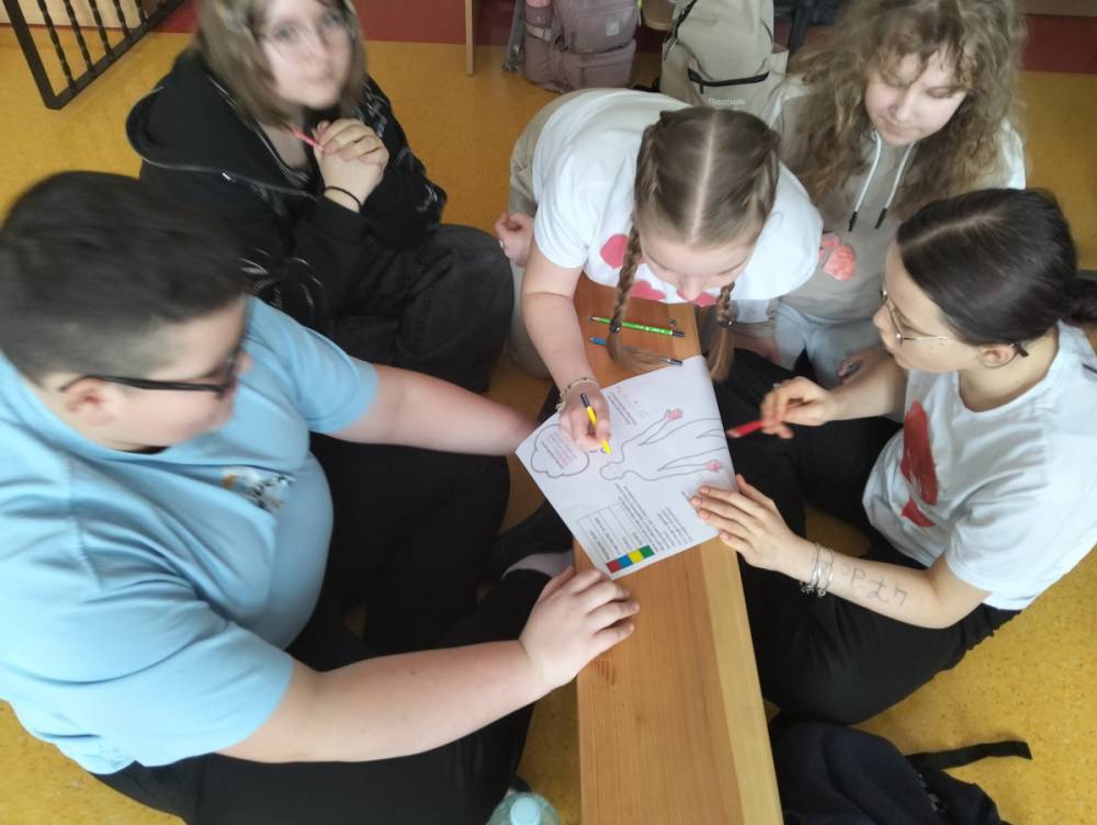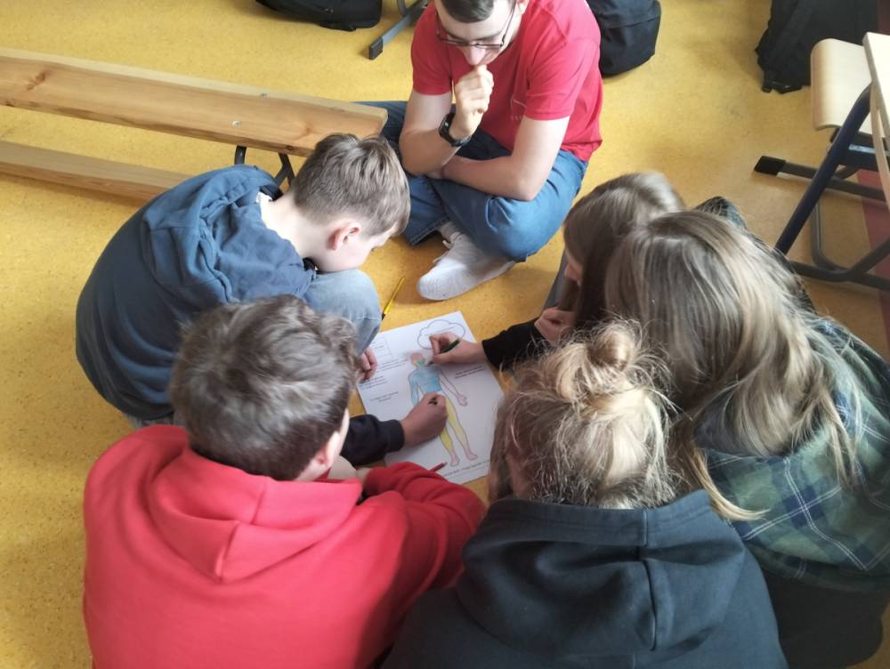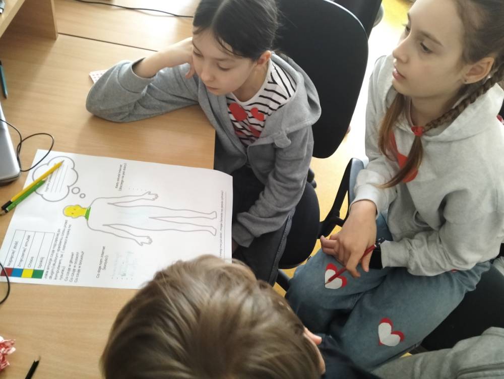 Po części teoretycznej przyszedł czas na warsztaty praktyczne, w czasie których uczniowie współpracując ze sobą w grupach podsumowali swoją wiedzę na temat wpływu technologii cyfrowych przez które stale jesteśmy bombardowani ogromną ilością bodźców: informacjami, aktualizacjami, powiadomieniami.