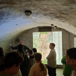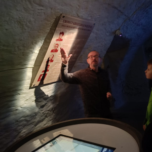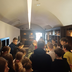 Pierwszym punktem programu był Ośrodek Myśli Patriotycznej i Obywatelskiej w Kielcach, mieszczący się w dawnym kieleckim więzieniu. Ośrodek ten to idealne miejsce do realizacji podstawy programowej z historii i nie tylko. W trakcie spaceru edukacyjnego uczniowie poznali miejsca ważne dla historii Kielc i Polski oraz ludzi, którzy tu działali lub stąd się wywodzili. W czasie zwiedzania stałej ekspozycji OMPiO, w otoczeniu nowoczesnej, multimedialnej przestrzeni ekspozycyjnej, uczniowie mogli podziwiać dokonania naszych przodków – od powstania kościuszkowskiego po okres PRL.