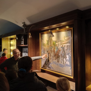 Kolejnym punktem wycieczki było kino "Moskwa", gdzie nasza młodzież wzięła udział w prelekcji nt. sztucznej inteligencji. W czasie spotkania uczniowie poznali historię sztucznej inteligencji, dowiedzieli się czym jest deepfake i spoofing, czyli fałszowanie głosu i wizerunku za pomocą AI, poznali niezwykłe zastosowanie AI w różnych dziedzinach - od medycyny po rozrywkę, oraz przykłady wykorzystania AI w życiu codziennym. Dowiedzieli się również, jak chronić się przed nadużyciami wykorzystującymi systemy AI.