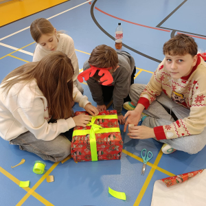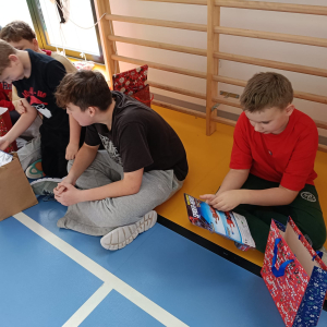 Uczniowie klas IV-VIII wcielili się w pomocników Świętego i obdarowali swoich kolegów i koleżanki pięknymi upominkami.
