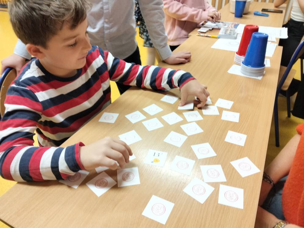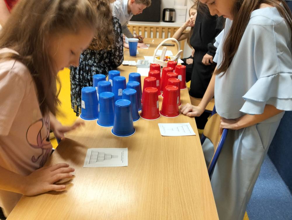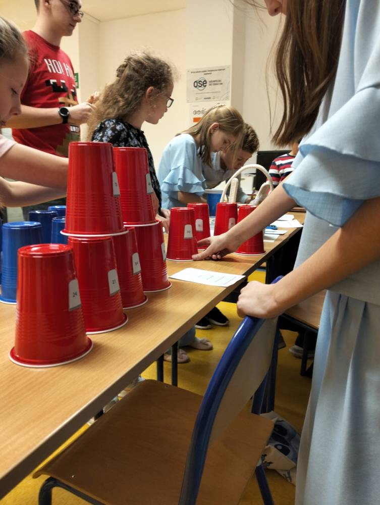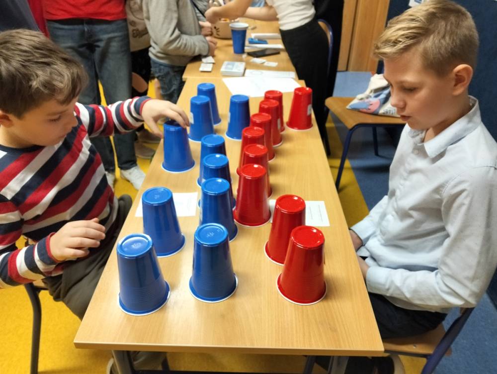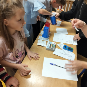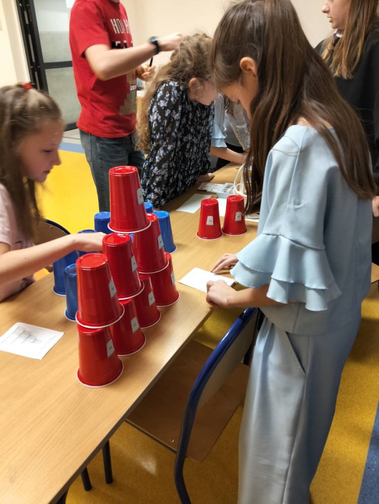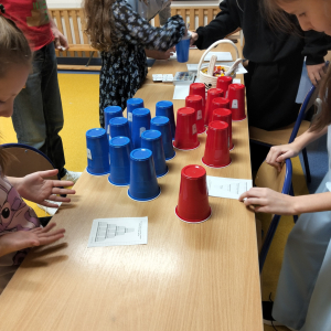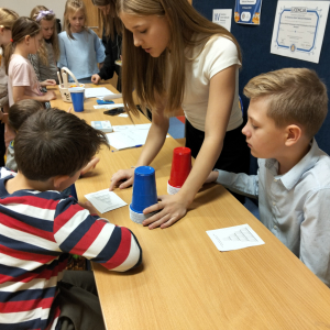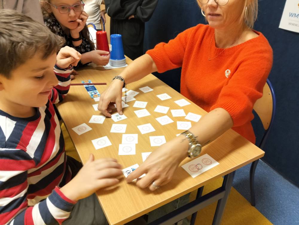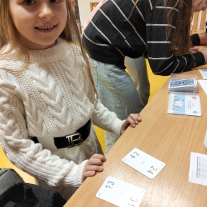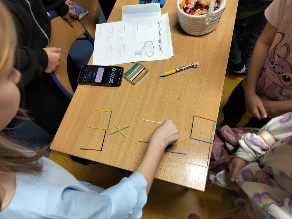 24 listopada 2025 r. obchodziliśmy Światowy Dzień Tabliczki Mnożenia. Akcja ta udowodniła, że nauka przez zabawę motywuje, przynosi efekty, a przede wszystkim odczarowuje matematykę. Szkolna komisja, w składzie Oliwia i Helenka, sprawdzała u młodszych i starszych uczniów oraz odważnych nauczycieli znajomość tabliczki mnożenia w niecodzienny sposób. Kubeczkowe wieże, Łamigłówki zapałczane, Karty Grabowskiego oraz Potęgowe Memory, to tylko niektóre konkurencje z jakimi zmierzyli się egzaminowani.