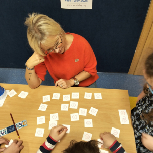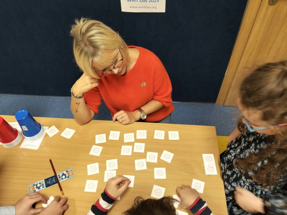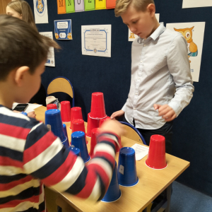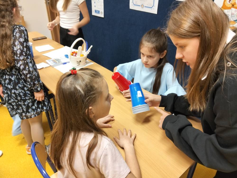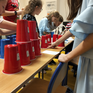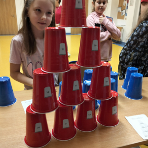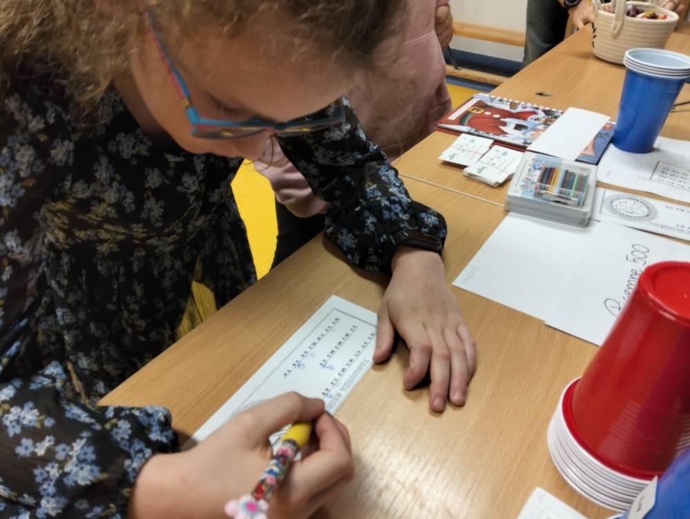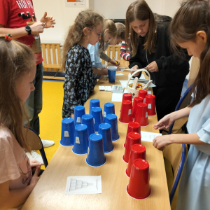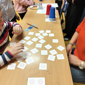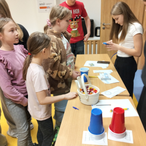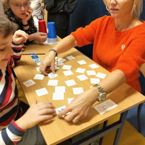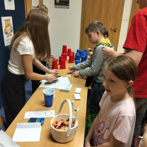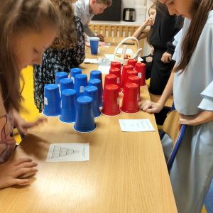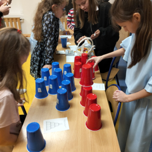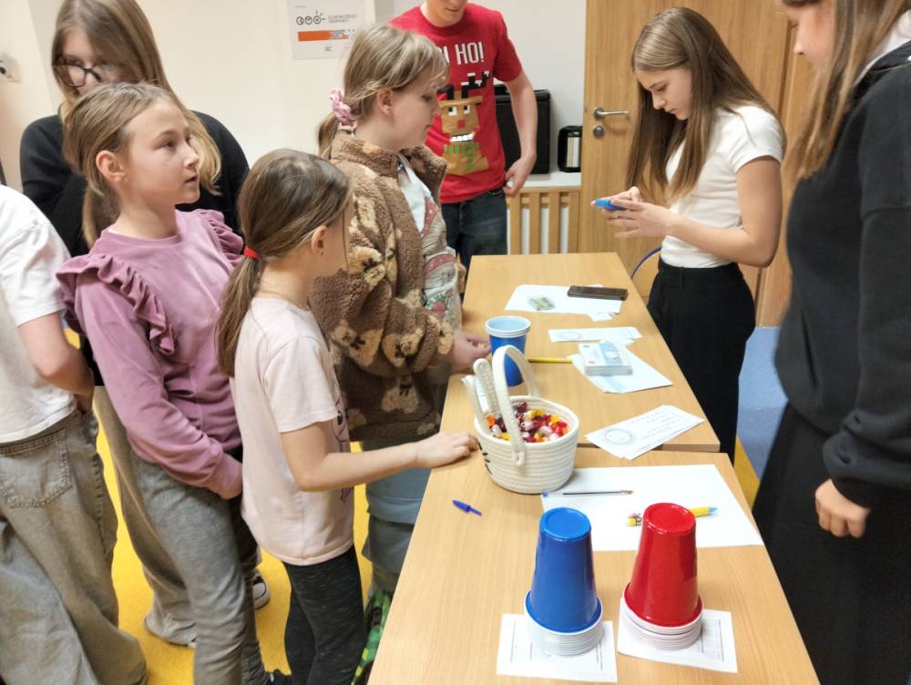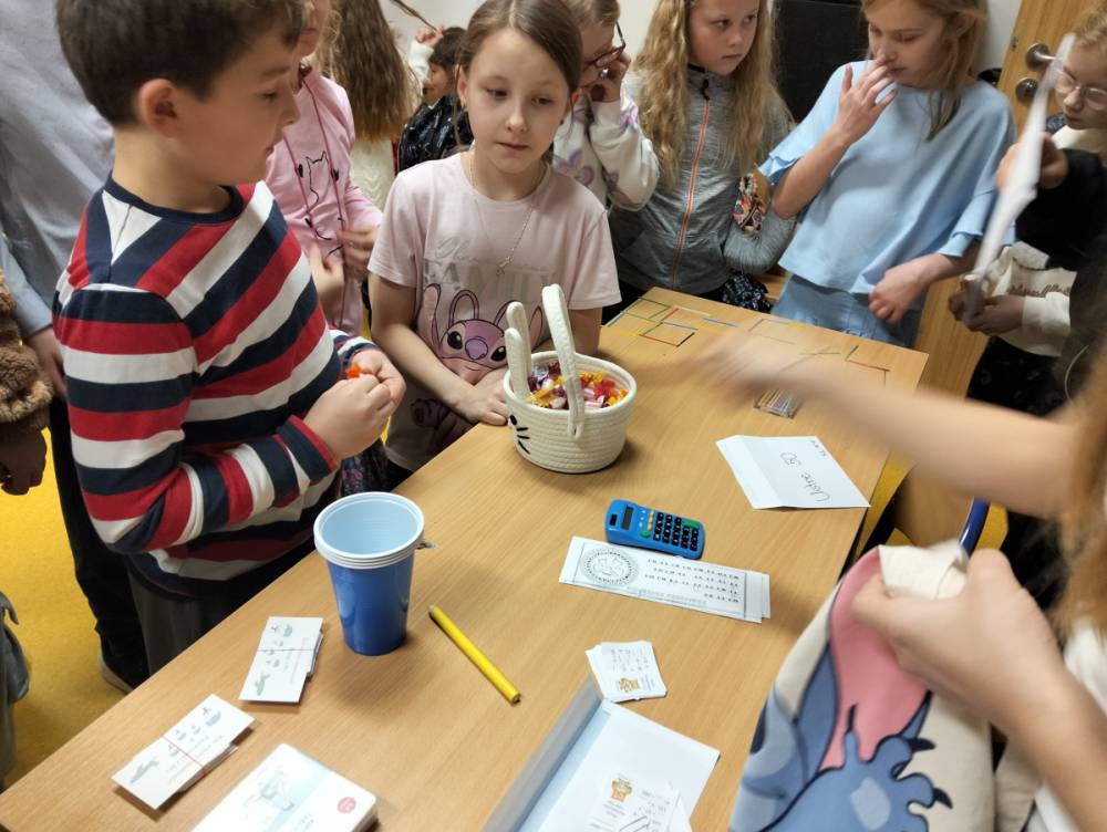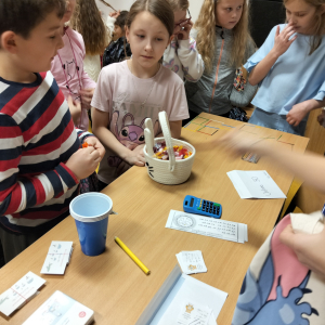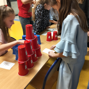 24 listopada 2025 r. obchodziliśmy Światowy Dzień Tabliczki Mnożenia. Akcja ta udowodniła, że nauka przez zabawę motywuje, przynosi efekty, a przede wszystkim odczarowuje matematykę. Szkolna komisja, w składzie Oliwia i Helenka, sprawdzała u młodszych i starszych uczniów oraz odważnych nauczycieli znajomość tabliczki mnożenia w niecodzienny sposób. Kubeczkowe wieże, Łamigłówki zapałczane, Karty Grabowskiego oraz Potęgowe Memory, to tylko niektóre konkurencje z jakimi zmierzyli się egzaminowani.