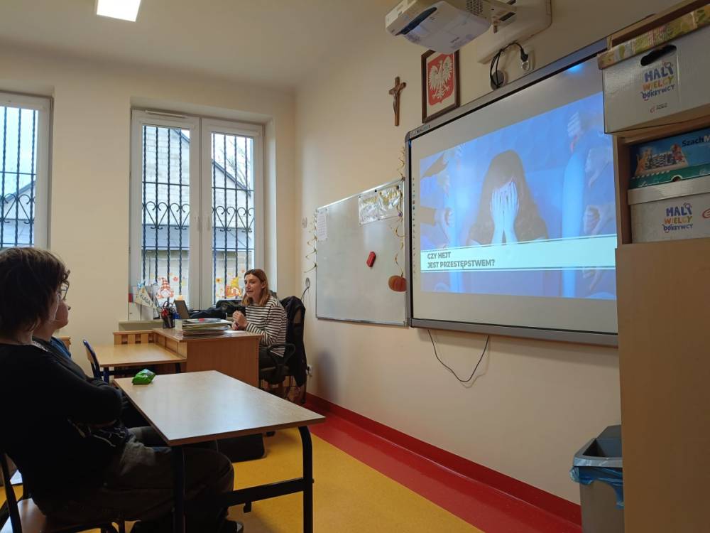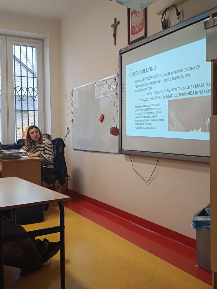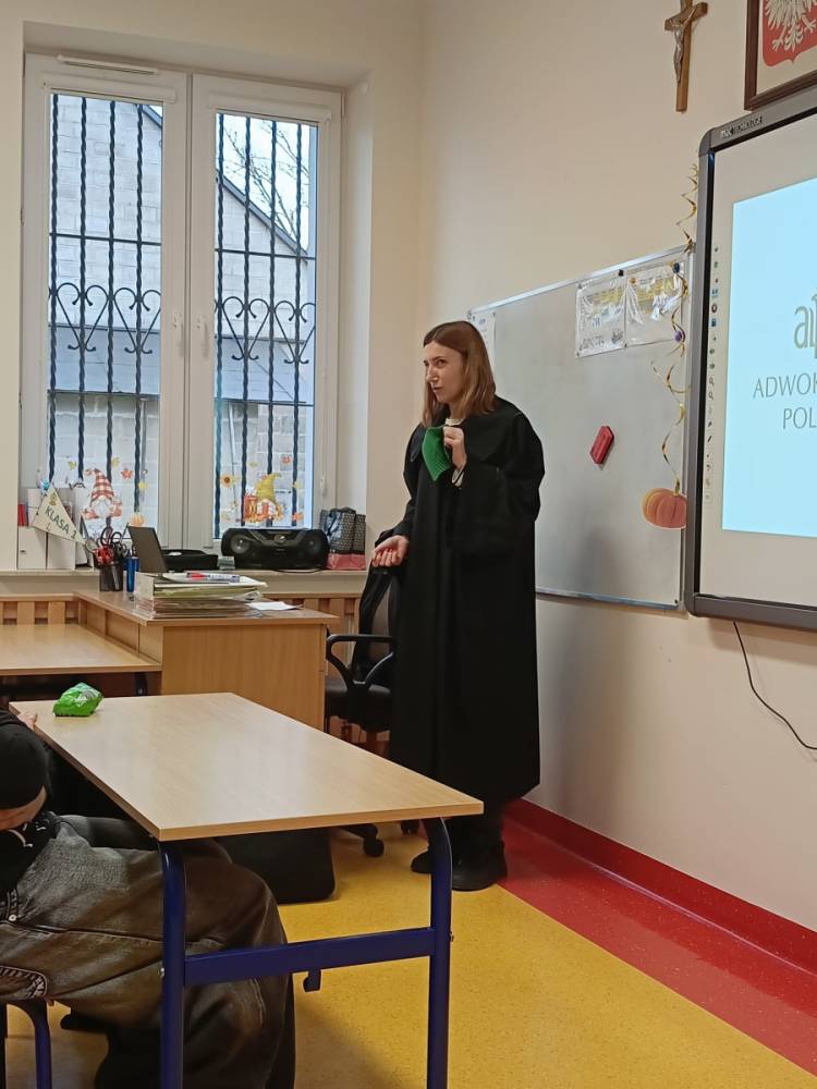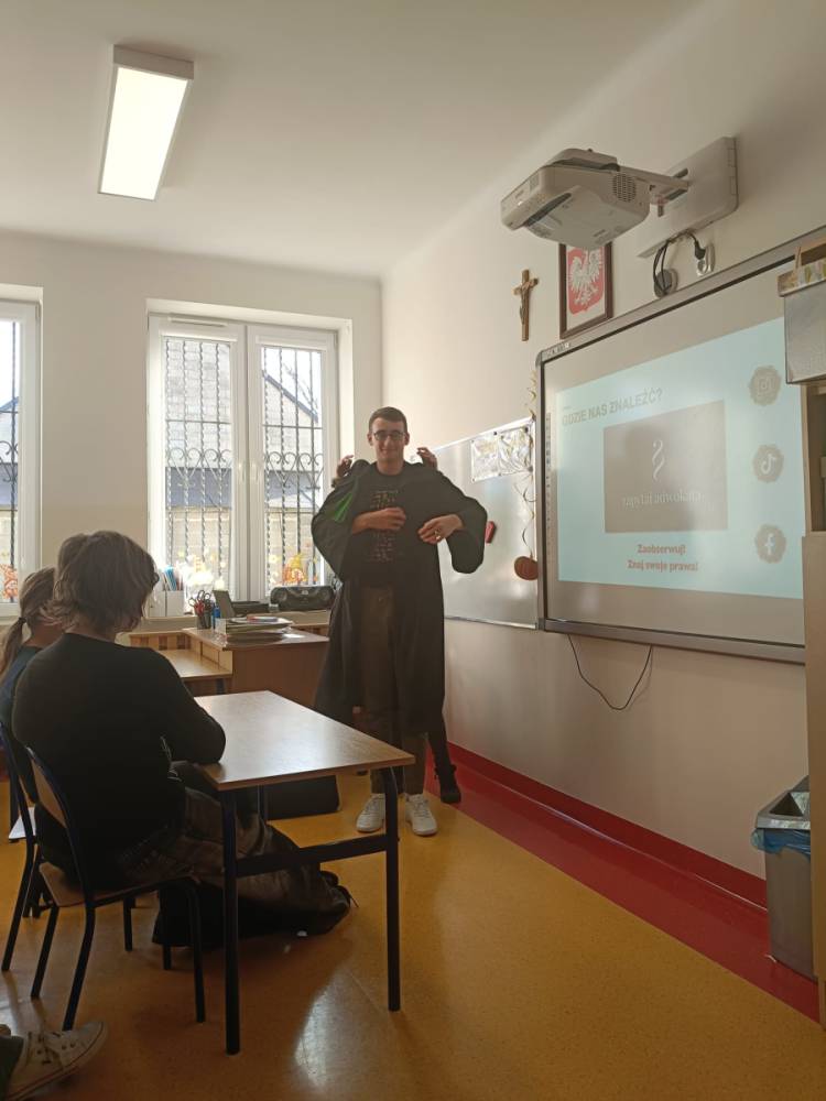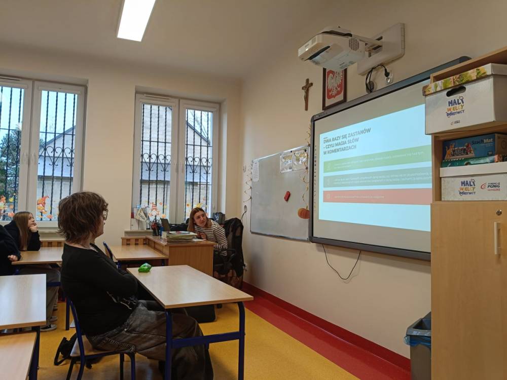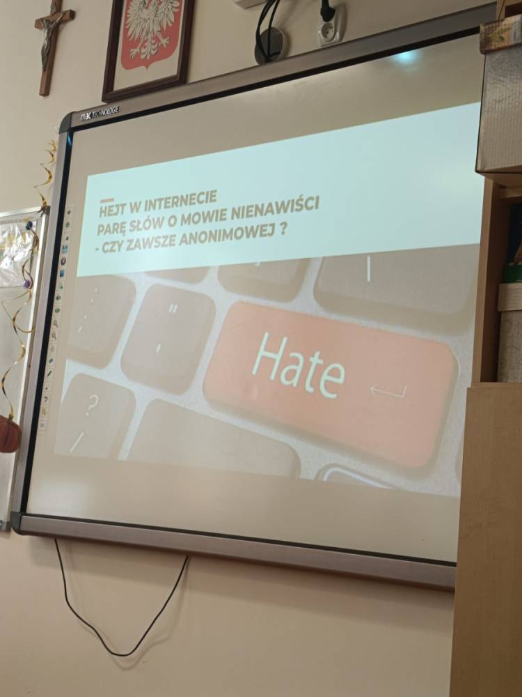 Hejt - pojęcie znane i słyszane każdemu, ale czy wszyscy wiedzą jakie są przejawy hejtu, jakie skutki emocjonalne i społeczne niesie za sobą oraz jaka odpowiedzialność prawna grozi za hejt i inne formy przemocy słownej? Odpowiedzi na te i inne pytania udzieliła naszym najstarszym uczniom Pani adwokat Julita Wcisło-Kołdras, która włączając naszą szkołę do IV edycji akcji edukacyjnej pod hasłem "Prawo vs. Hejt. Szkoła wolna od hejtu" przeprowadziła prelekcję połączoną z pokazem multimedialnym i dyskusją. Celem akcji jest zwrócenie uwagi młodzieży na realne konsekwencje mowy nienawiści oraz pokazania im, jak istotną rolę pełni prawo w ochronie przed hejtem i przemocą słowną. Podczas spotkania Pani adwokat poruszyła zagadnienia związane z odpowiedzialnością prawną za hejt, wskazała, jakie środki prawne oraz instytucje mogą wspierać młodzież w sytuacji doświadczenia przemocy w sieci i w szkole, jak reagować na przejawy hejtu, jak wspierać osoby nim dotknięte oraz jak budować kulturę wzajemnego szacunku w społeczności szkolnej.