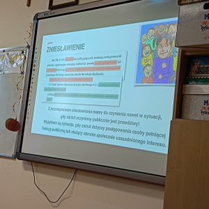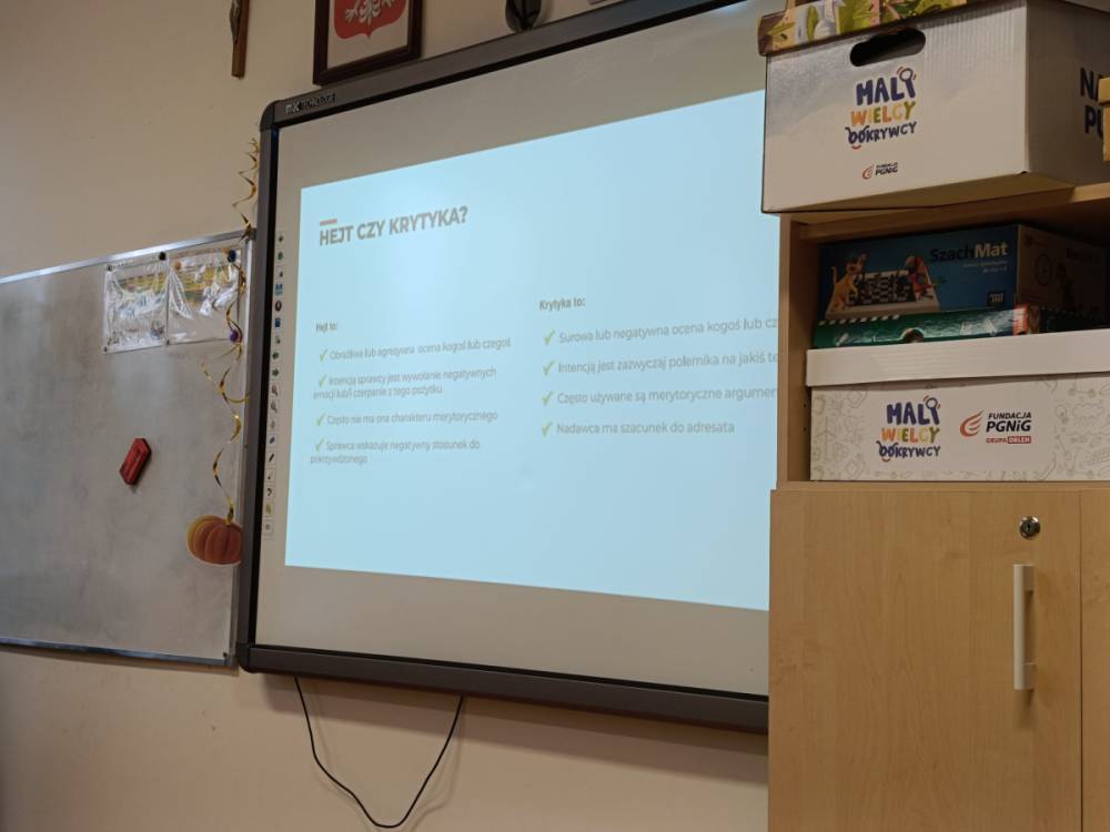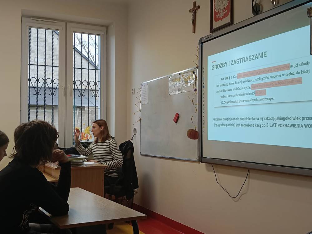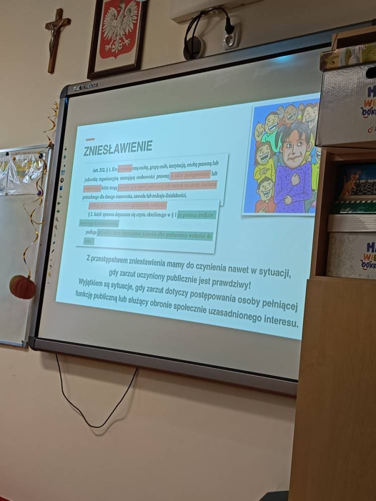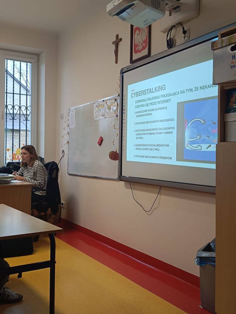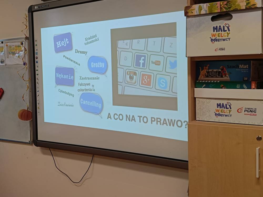 Hejt - pojęcie znane i słyszane każdemu, ale czy wszyscy wiedzą jakie są przejawy hejtu, jakie skutki emocjonalne i społeczne niesie za sobą oraz jaka odpowiedzialność prawna grozi za hejt i inne formy przemocy słownej? Odpowiedzi na te i inne pytania udzieliła naszym najstarszym uczniom Pani adwokat Julita Wcisło-Kołdras, która włączając naszą szkołę do IV edycji akcji edukacyjnej pod hasłem "Prawo vs. Hejt. Szkoła wolna od hejtu" przeprowadziła prelekcję połączoną z pokazem multimedialnym i dyskusją. Celem akcji jest zwrócenie uwagi młodzieży na realne konsekwencje mowy nienawiści oraz pokazania im, jak istotną rolę pełni prawo w ochronie przed hejtem i przemocą słowną. Podczas spotkania Pani adwokat poruszyła zagadnienia związane z odpowiedzialnością prawną za hejt, wskazała, jakie środki prawne oraz instytucje mogą wspierać młodzież w sytuacji doświadczenia przemocy w sieci i w szkole, jak reagować na przejawy hejtu, jak wspierać osoby nim dotknięte oraz jak budować kulturę wzajemnego szacunku w społeczności szkolnej.