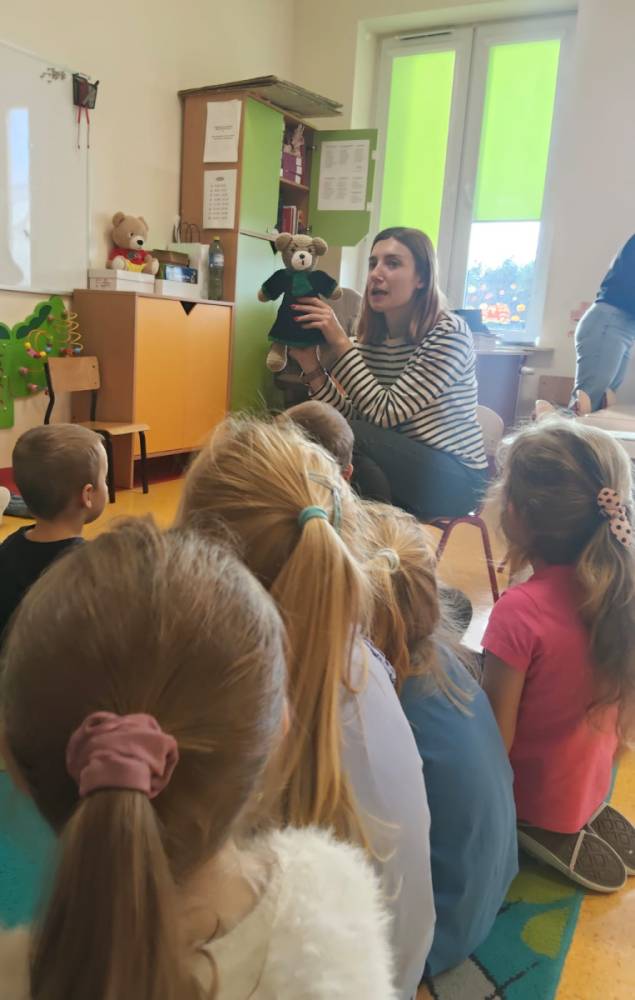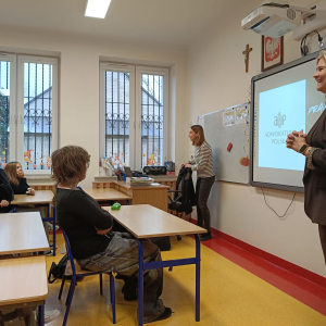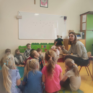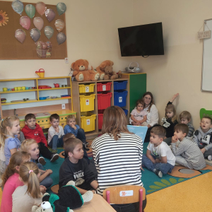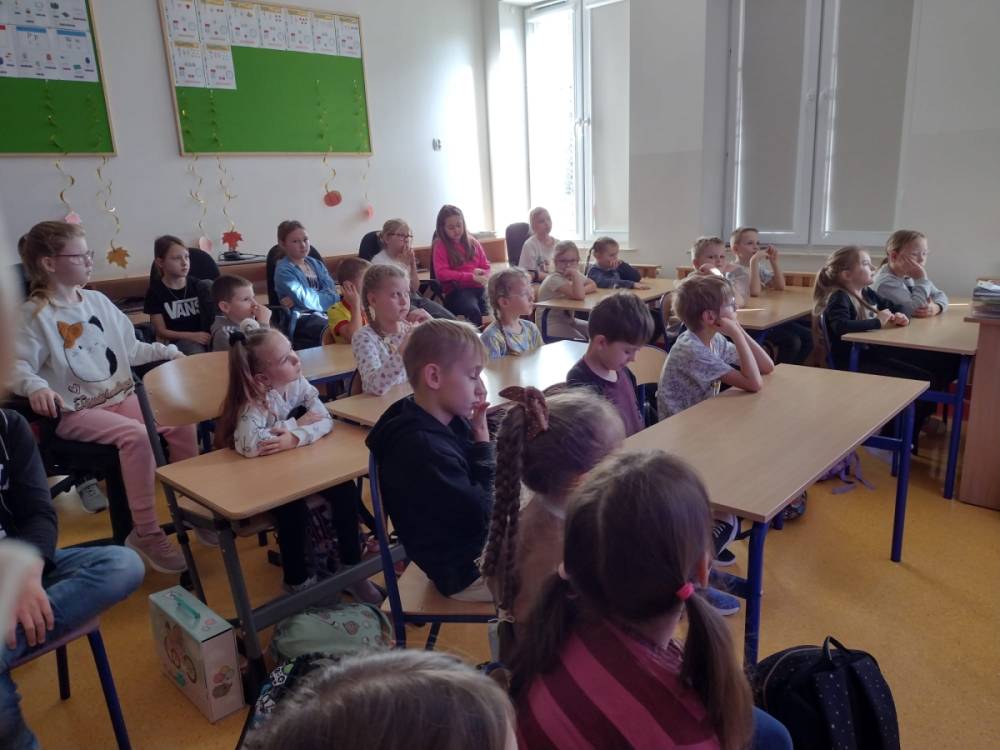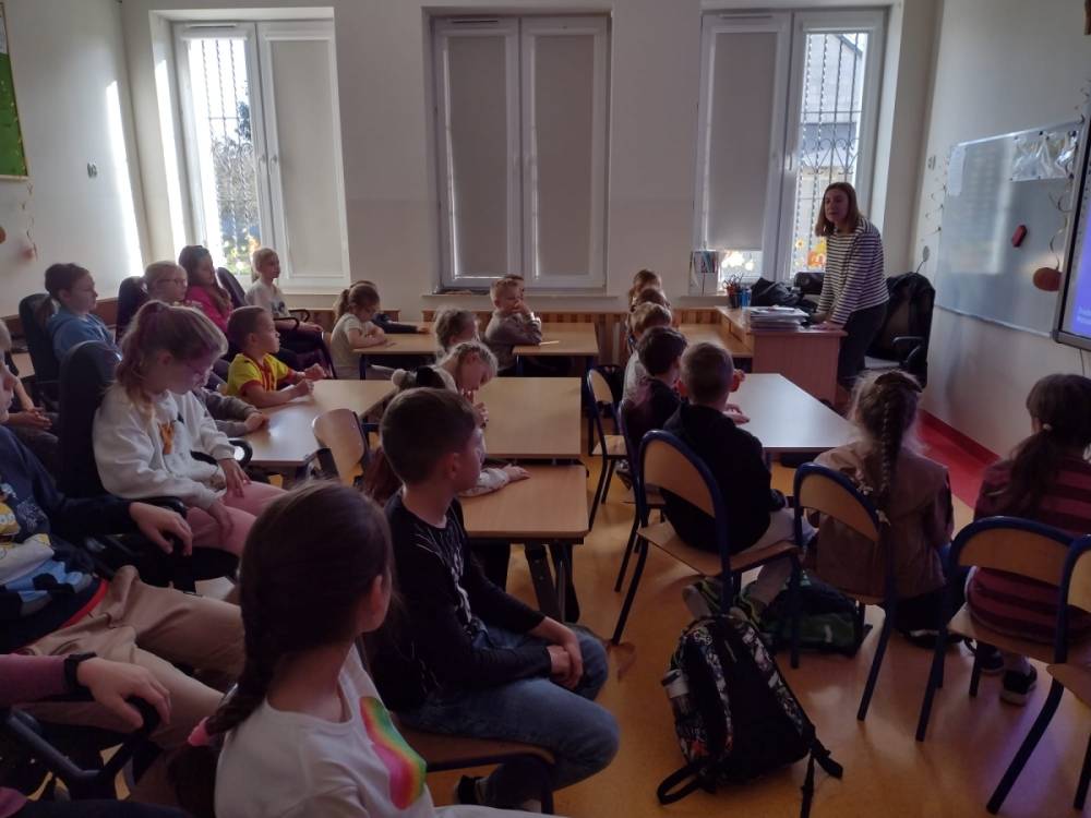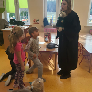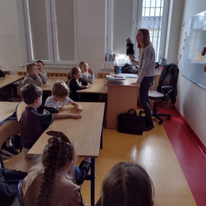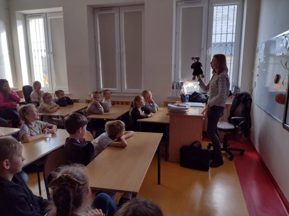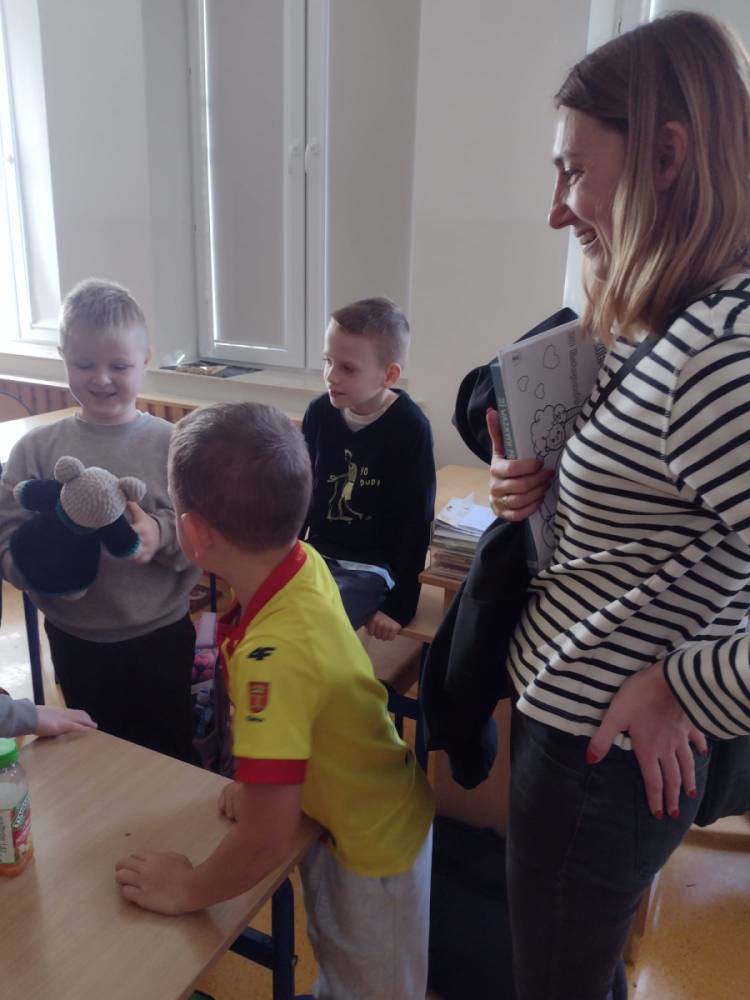 Podczas wizyty w naszej szkole Pani adwokat Julita Wcisło-Kołdras nie zapomniała o młodszych uczniach. W związku z obchodzonym 20 listopada Międzynarodowym Dniem Praw Dziecka zwróciła uwagę na znaczenie praw najmłodszych oraz na potrzeby i ochronę dzieci na całym świecie. Nie obyło się także bez prezentacji i przymierzania stroju adwokackiego. Powodzeniem cieszył się również Miś Adwokat, który towarzyszył Pani Julicie w czasie spotkań.