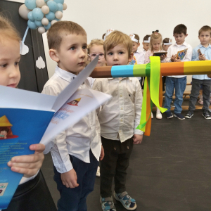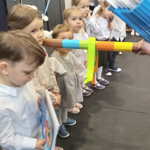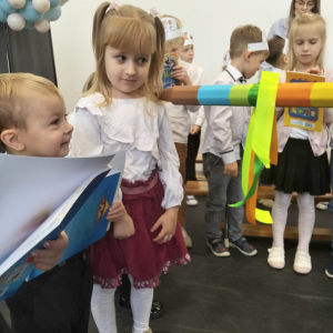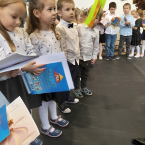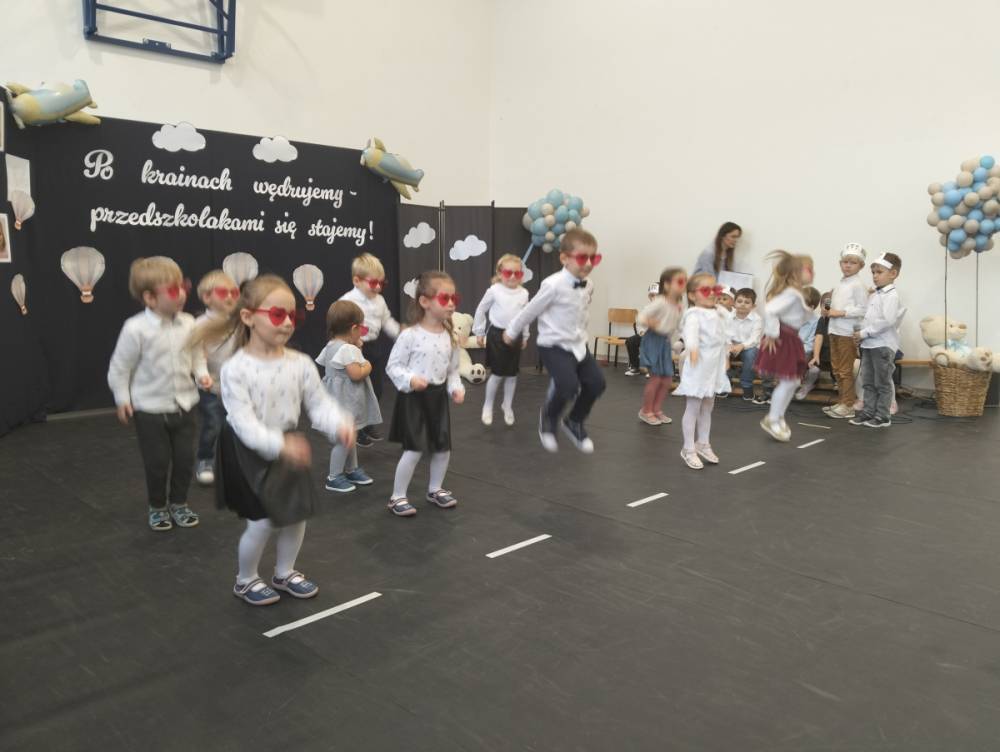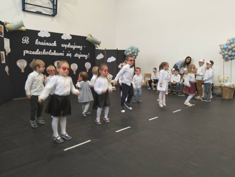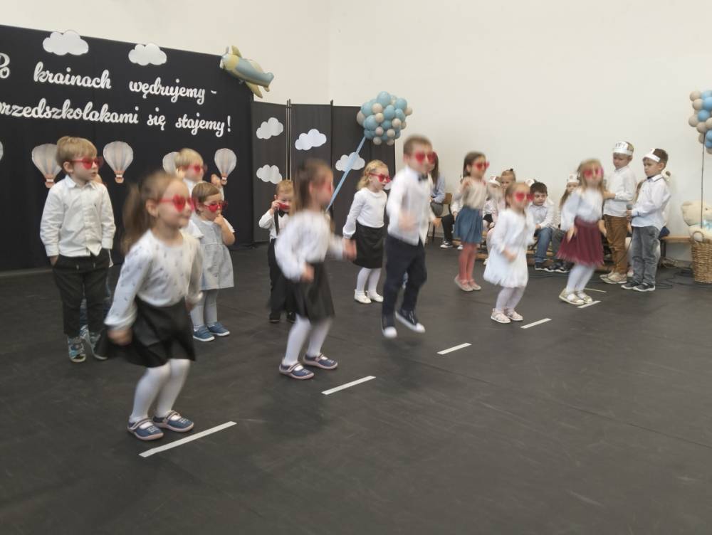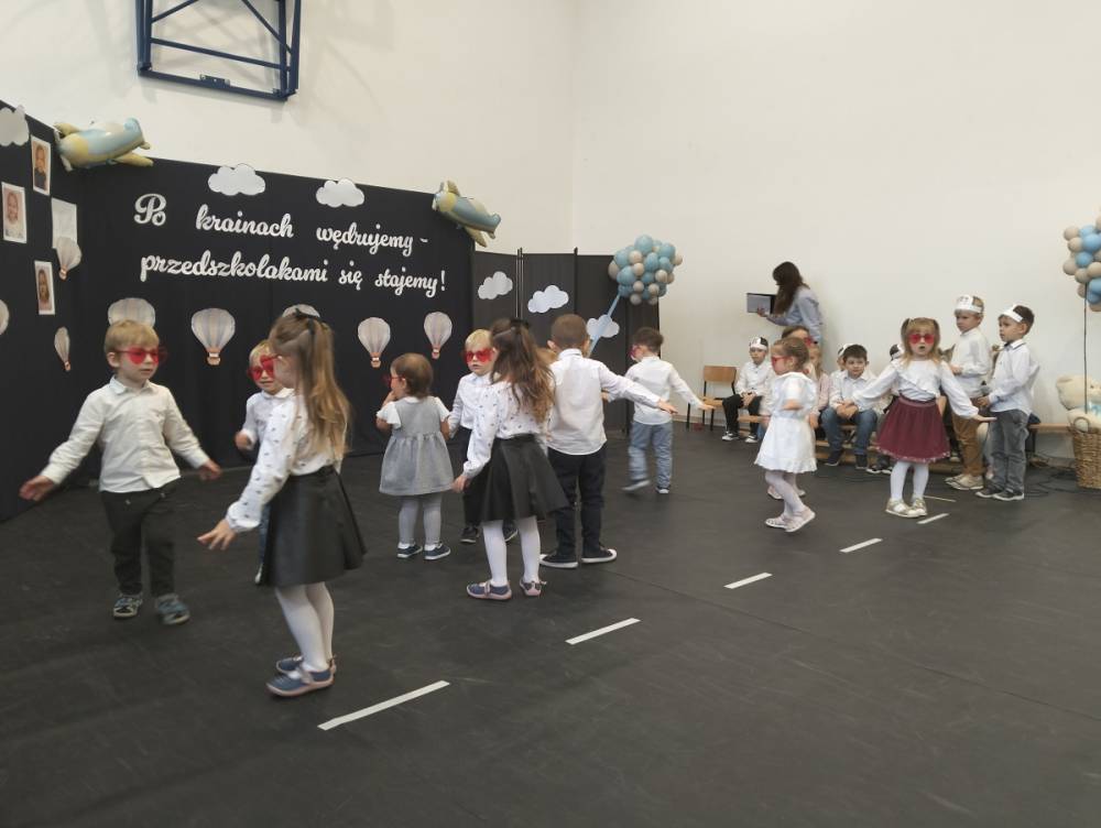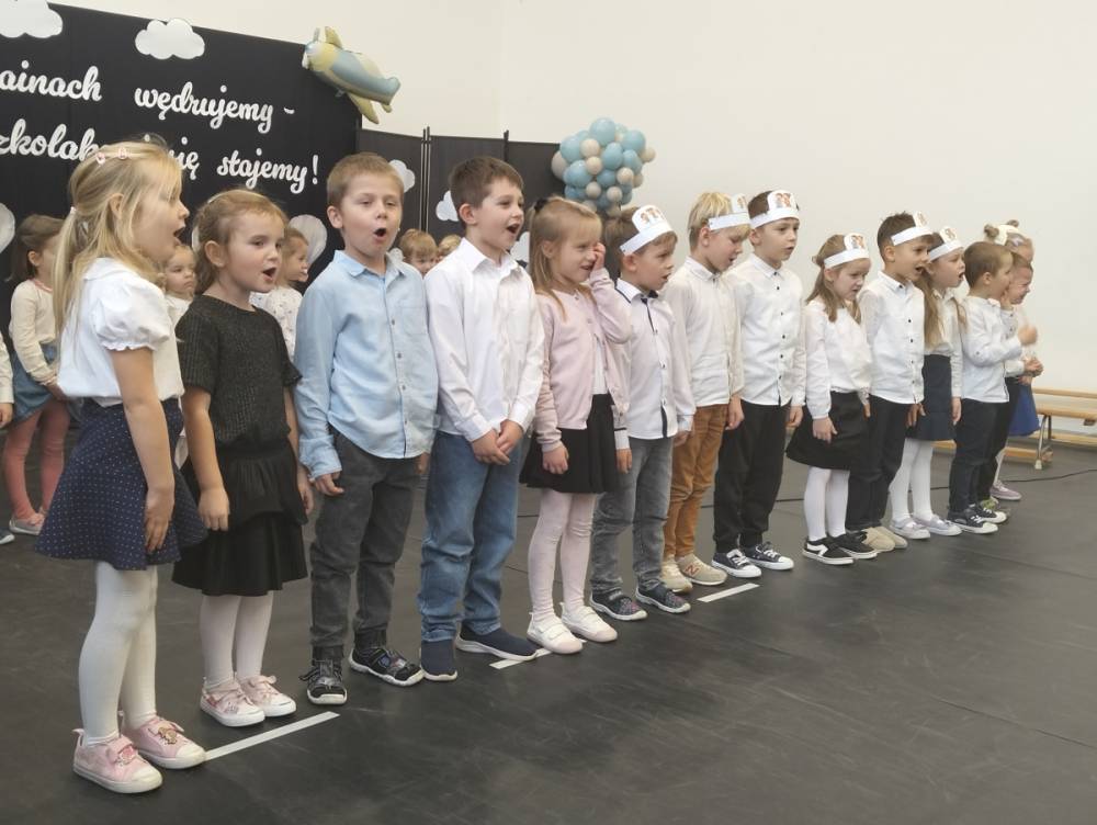 Pod takim hasłem odbyło się 21 listopada 2025 r. w naszej szkole wyjątkowe wydarzenie – Pasowanie na Przedszkolaka. Z dumą patrzyliśmy, jak nasi najmłodsi odkrywcy z Punktu Przedszkolnego „Kubuś” przemierzali krainy tańca, śpiewu i mądrości, by na końcu podróży oficjalnie wstąpić do grona przedszkolaków. Razem z naszymi maluchami występowały również dzieci z Oddziału Przedszkolnego, które dały piękny przykład młodszym i dodały im pewności siebie na scenie.