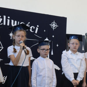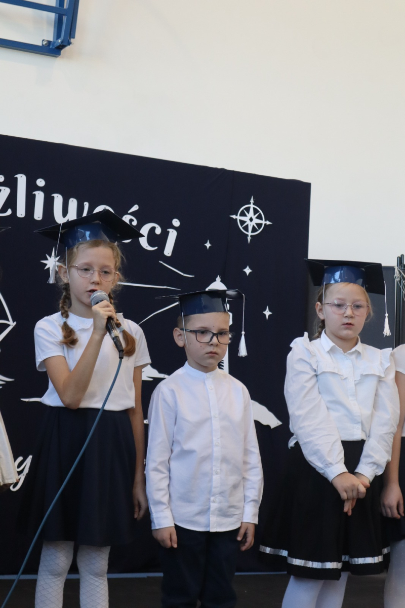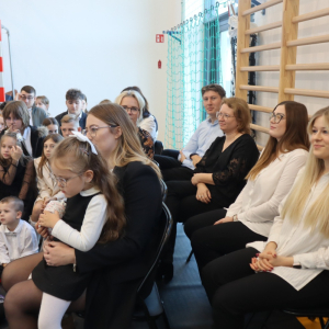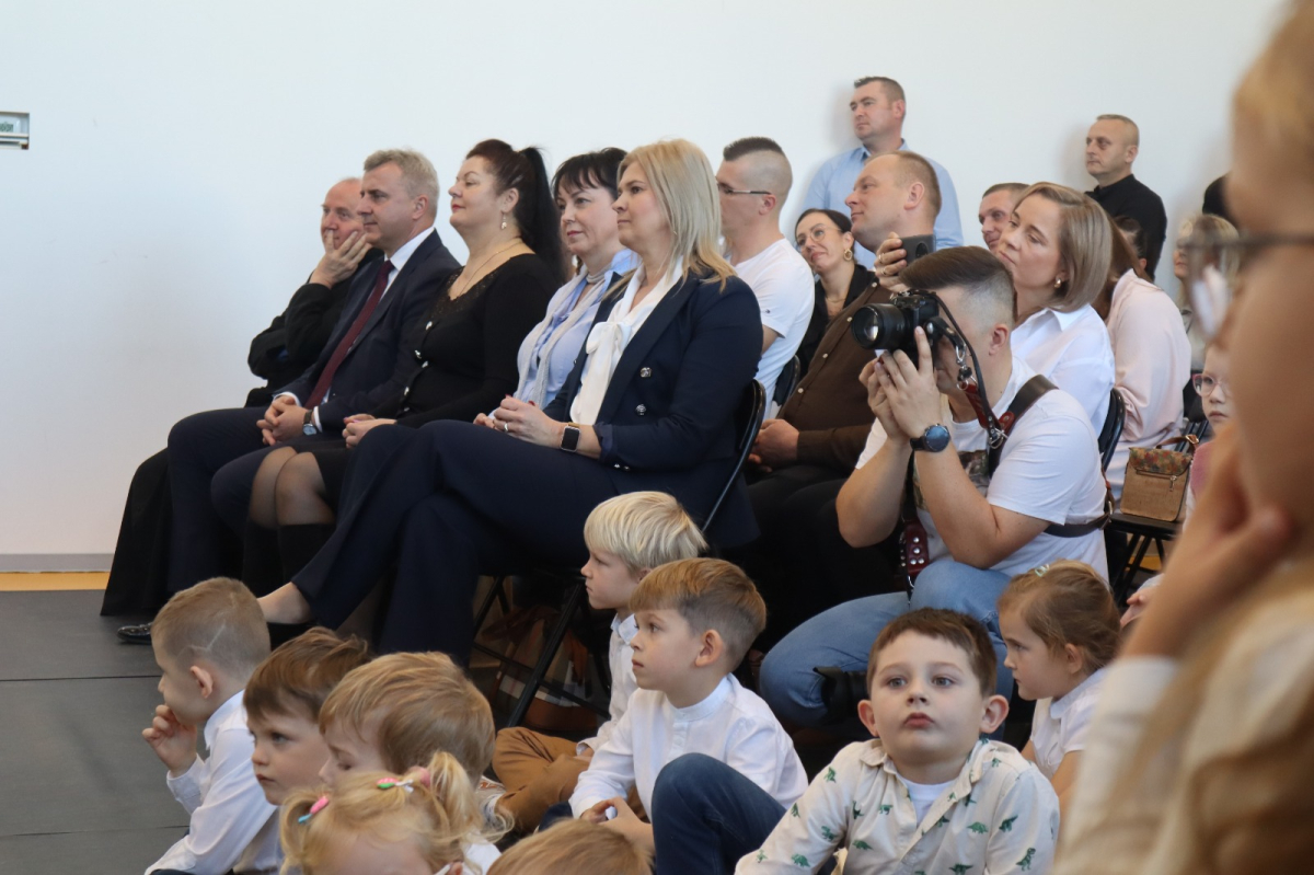 Uroczystość otworzyła Pani Dyrektor Katarzyna Musiał, która powitała wszystkich zgromadzonych, w tym przybyłych gości: Burmistrza Miasta i Gminy Daleszyce Pana Dariusza Meresińskiego, Radną Rady Powiatu Kieleckiego Panią Annę Kosmalę, Sołtys Sołectwa Marzysz Panią Bożenę Kołodziejczyk oraz Proboszcza Parafii w Kaczynie ks. Grzegorza Przybylskiego oraz Przewodniczącą Rady Rodziców Panią Barbarę Baran. Pani Dyrektor skierowała również kilka ciepłych słów do Pierwszoklasistów, by dodać im otuchy przed jakże ważnym dla nich, dla ich rodziców i szkoły wydarzeniem.