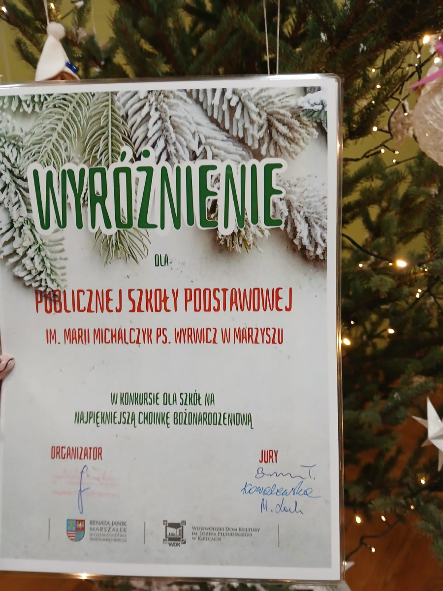 5 grudnia 2025 r., podczas uroczystego otwarcia II Jarmarku Bożonarodzeniowego w Kielcach, ogłoszono wyniki konkursu. Niestety, nie udało nam się zająć miejsca w konkursie, ale za wkład pracy i zaangażowanie nasza szkoła otrzymała Wyróżnienie oraz nagrodę.